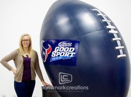 TEAM Coalition promotes designated driving at the Oakland Raiders' football games with this giant inflatable football on a pedestal. Fans sign the giant football and pledge to drink responsibly.