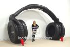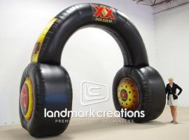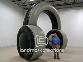 To attract trade show visitors to their booth at the 2013 International Consumer Electronics Show CES in Las Vegas, ONKYO inflates this giant headphone replica. The giant headphones contain functioning speakers in the earpieces to play live music, enticing attendees to the ONKYO booth to learn more about their technology and sound-enhancing products.