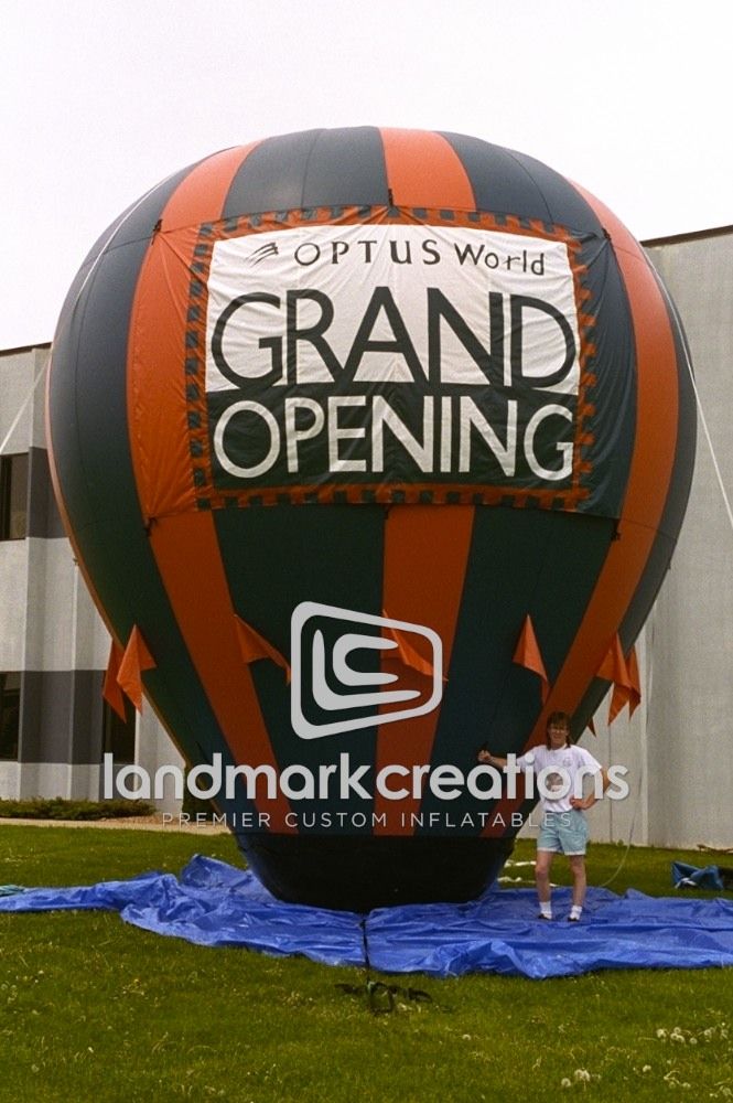 This red and black inflatable hot air shape for OPTUS World helped customers easily find their new location during grand opening week!
