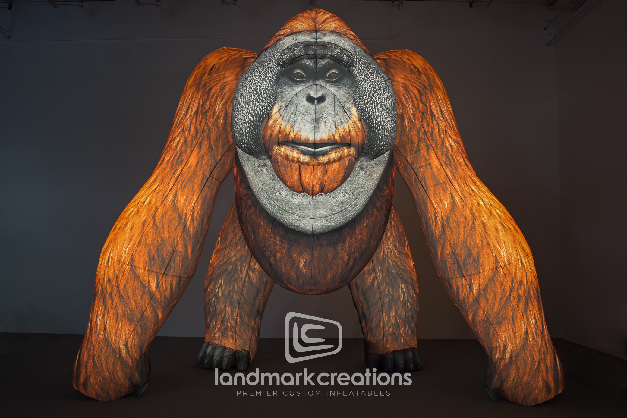 Brimming with personality, this giant orangutan inflatable display for the Virginia Zoo is a perfect photo opp for guests of the zoo's "ZooLumination" Exhibit, which features over two-dozen inflatable animal replicas in a daytime walking tour and an evening drive-through event.