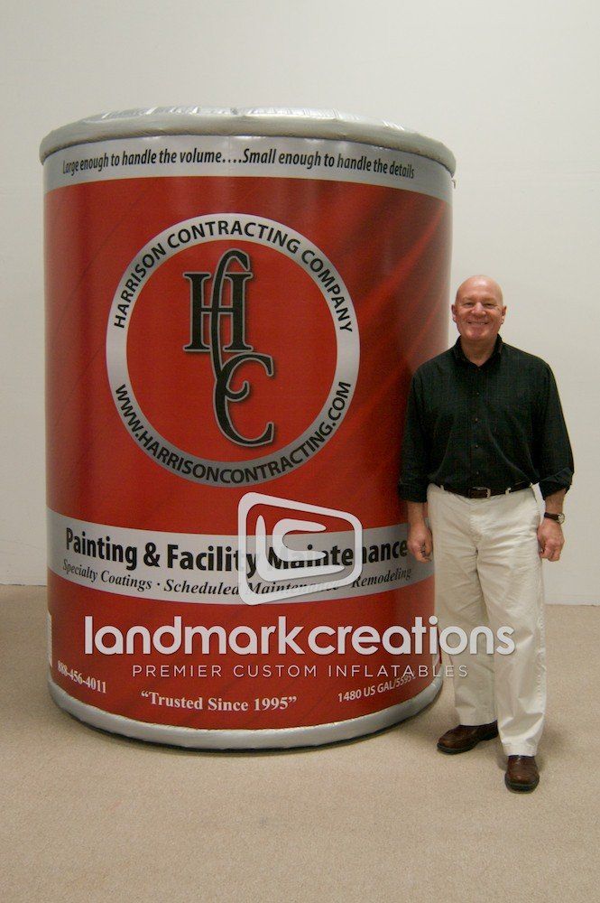 Harrison Contracting Co. used this inflatable can to grab attention and start conversations with those visiting their trade show booth at the AutoZone Annual Spring Meeting in 2010.