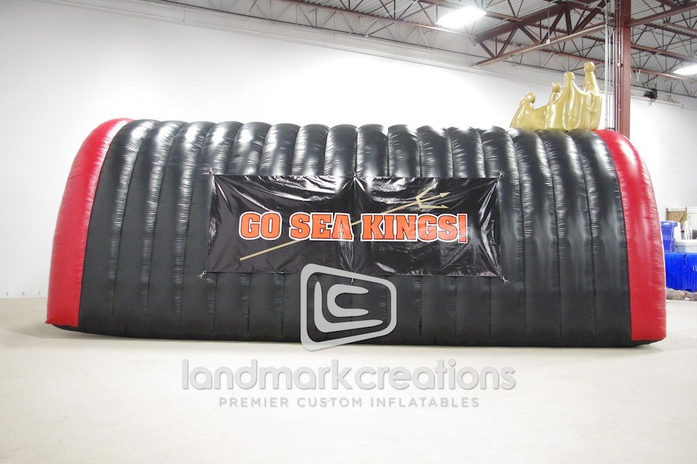 Palos Verdes High School showed off their brand new, custom designed inflatable sports tunnel at Homecoming this year. What a way to celebrate! The Sea King tunnel, complete with gold crown and printed details, got fans cheering!