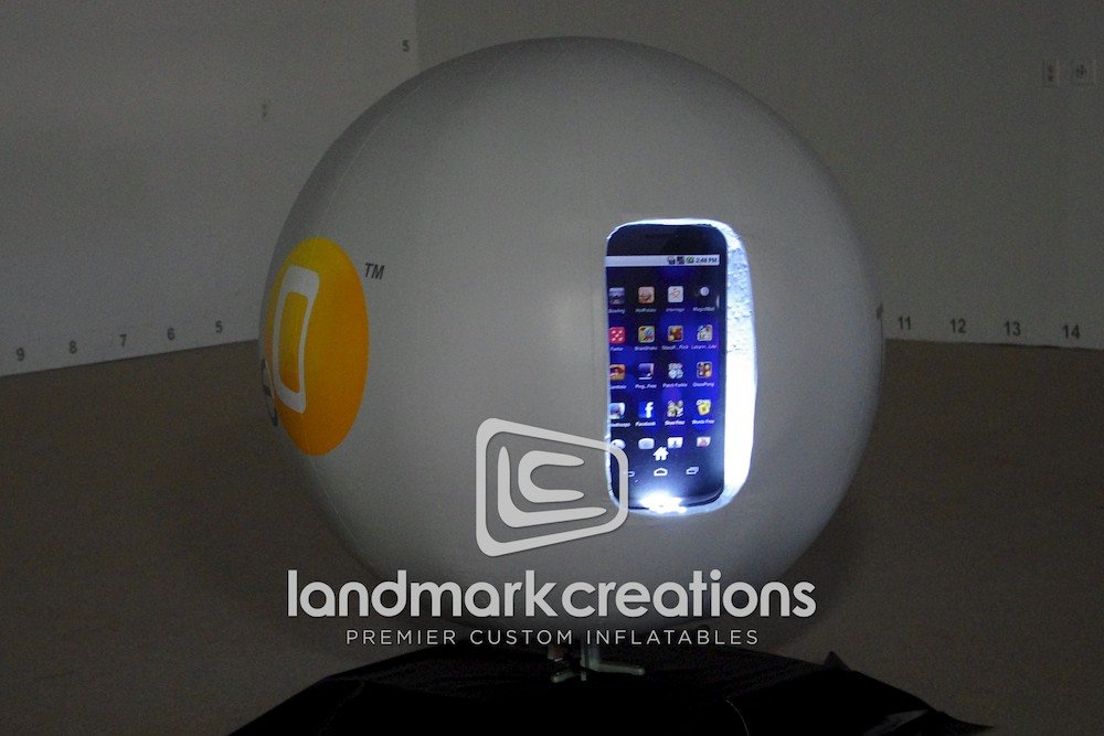This inflatable product replica display of The O was placed atop the Physical Apps trade show booth at Toy Fair 2012 in New York. Using LED lights and a rotating base, it got immediate attention from trade show attendees.