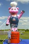 Inflatable mascots, like this giant pig complete with chef's hat and overalls made for Hatfield Quality Meats, welcomes crowds to grand opening events.