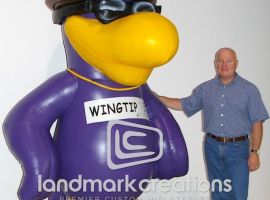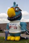 Big Bob's Flooring Outlet inflates this 20-foot parrot, complete with t-shirt and glasses, to attract attention to more than 25 retail locations.