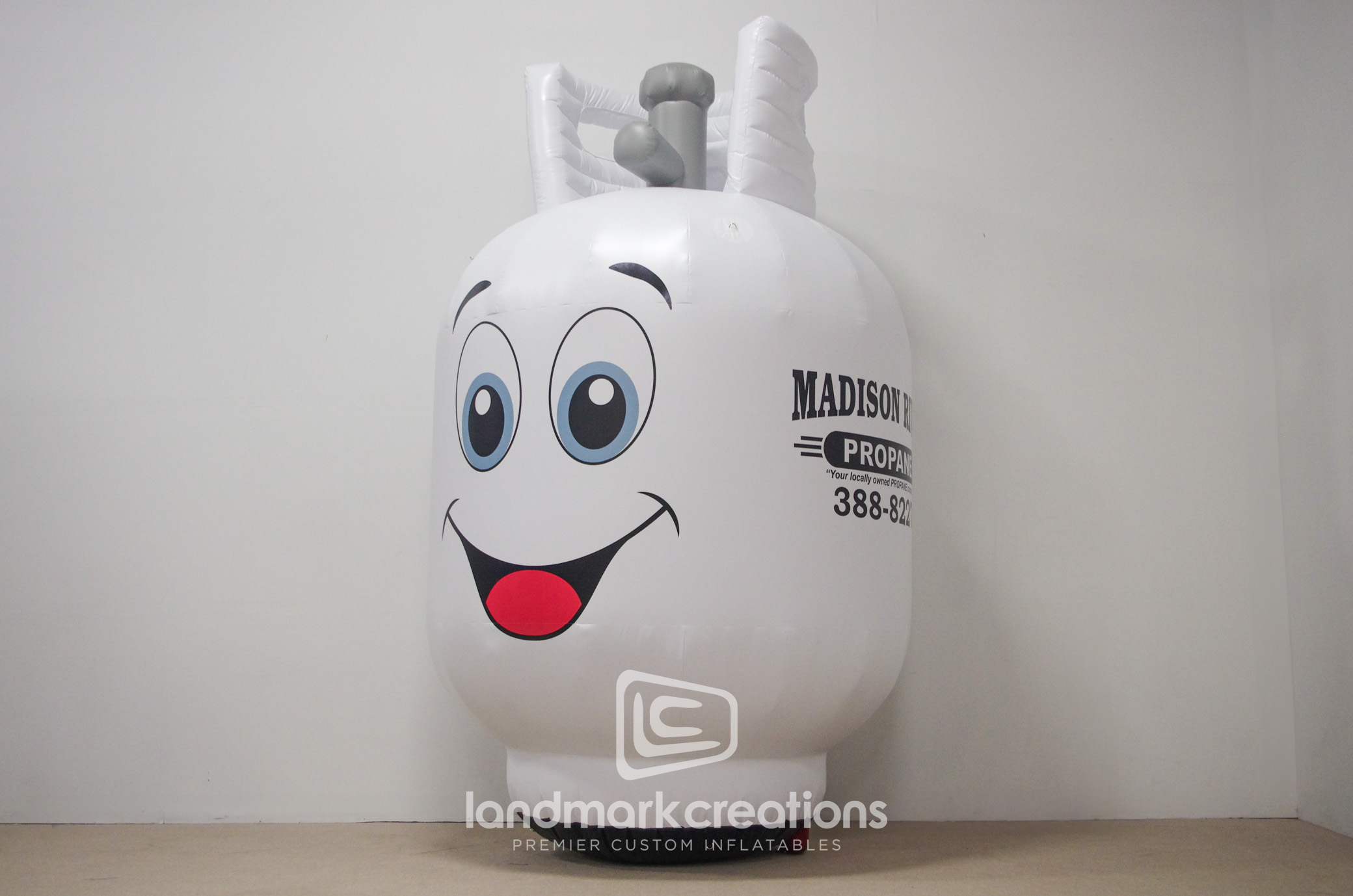The Propane Tank inflatable is a detailed and realistic replica, ideal for trade shows and outdoor promotions. This custom inflatable draws attention to your brand, providing an excellent visual anchor for energy or industrial events.