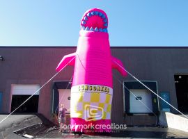Several inflatable displays, including this stylized ape mascot added to the fun & beach vibe at SunSoaked Music Festival 2019. Inflatable displays are perfect for music festivals because they make great photo opps while transporting easily between events.