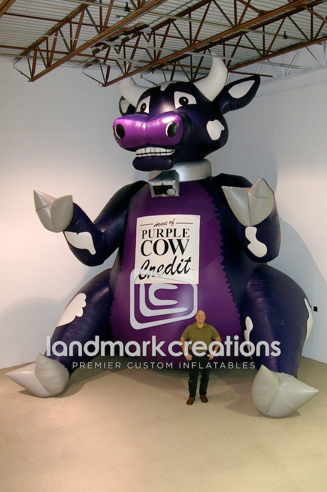 Draw attention to financing options available at your automotive retail location by inflating a custom-designed mascot like this giant Purple Cow Credit mascot for Vaden Hyundai in Georgia.