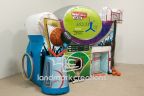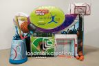 • Includes: Internal blower system, storage bag, tethers,Mini basketball hoop, mini basketballs, (3) Hula hoops (3), Hockey Pucks (6), 36" Hockey Sticks (2), Rubber baseball (6) ,installation hardware & repair kit