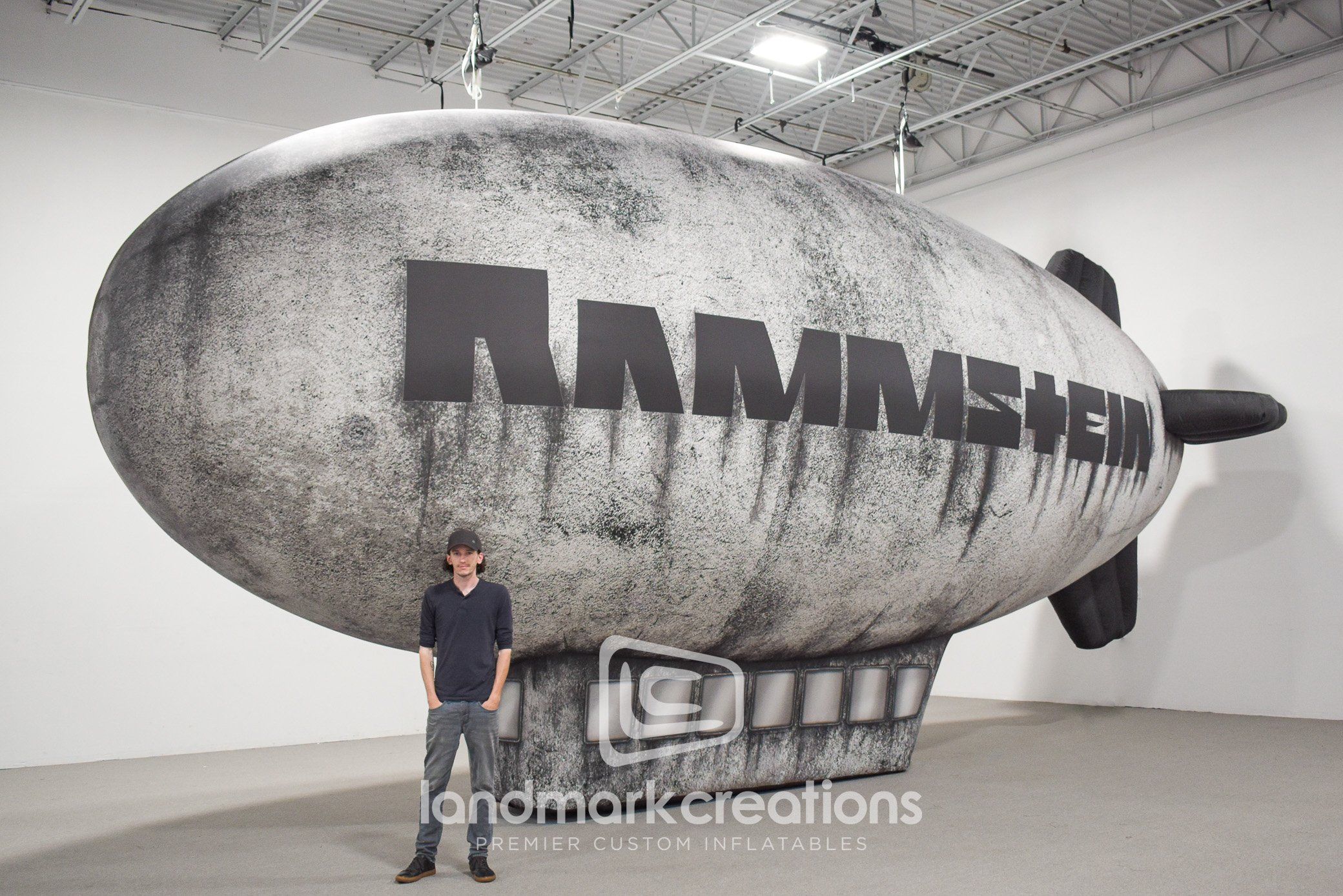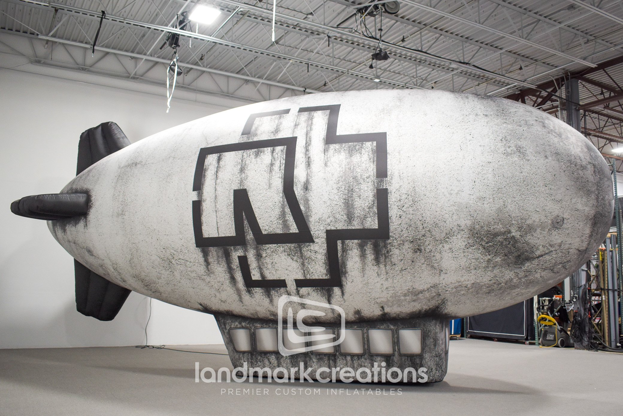 German Neue Deutsche Härte band Rammstein use this giant custom inflatable blimp as a statement piece during their 2022 North American tour. The Rammstein blimp makes a fun photo opp for fans to share during and after the concert. Beause custom inflatables are easy to set up and transport between shows, they're a perfect fit for concert tours.