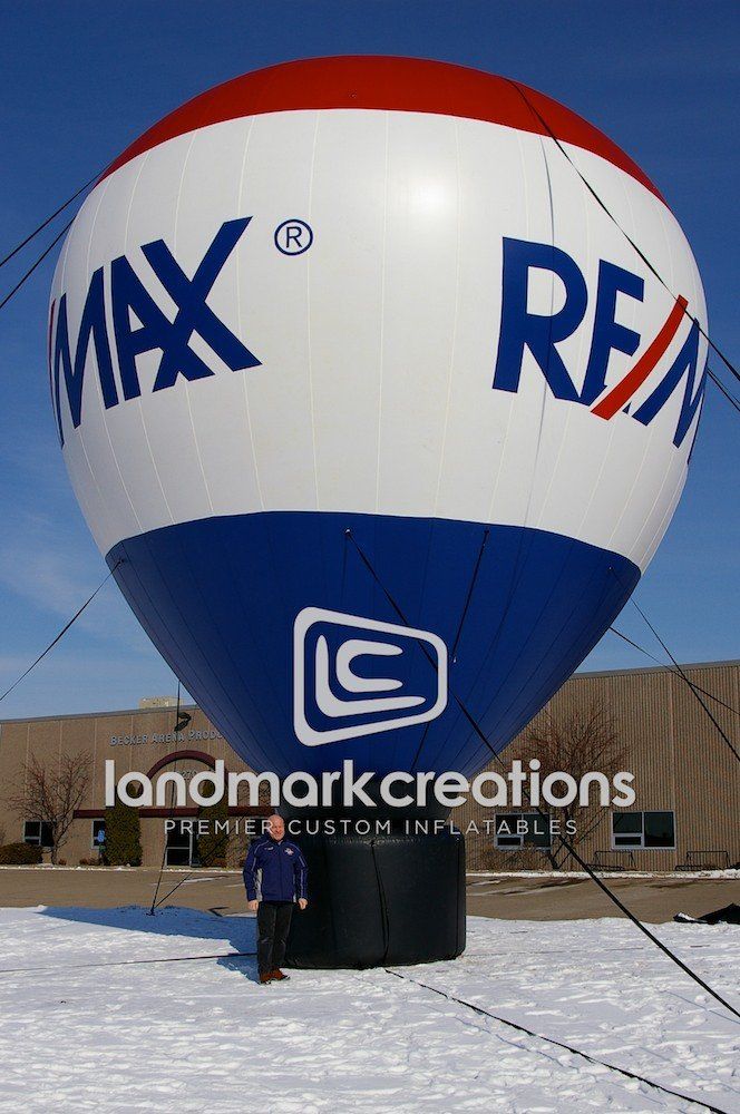 Residential and commercial real estate company, RE/MAX, turned their recognizable logo into a giant advertising inflatable. The Inflatable hot air balloon shape attracts attention to RE/MAX office locations and other company events.