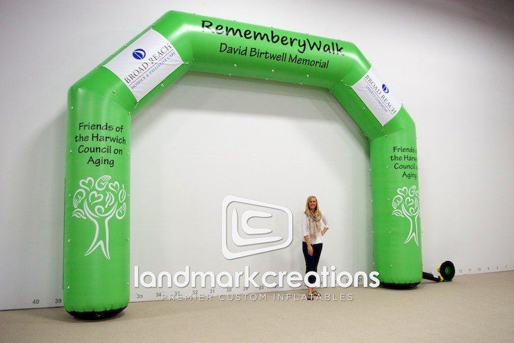RememberyWalk, a fundraiser that benefits individuals with Alzheimer's and their caregivers, uses this custom-designed inflatable archway as the start and finish line at their race events. Sponsorship banners for Broad Reach Healthcare are prominently displayed for participants to see!