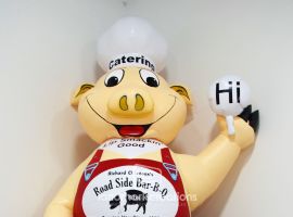Custom inflatable characters are always a big hit at grand openings. Rib City Grill had their inflatable pig mascot designed with a chef's hat and bib overalls to create an inviting and friendly atmosphere in front of their restaurants.