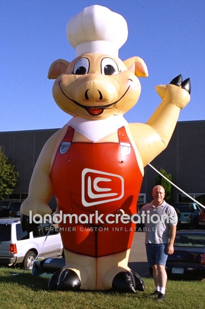 Custom inflatable characters are always a big hit at grand openings. Rib City Grill had their inflatable pig mascot designed with a chef's hat and bib overalls to create an inviting and friendly atmosphere in front of their restaurants.
