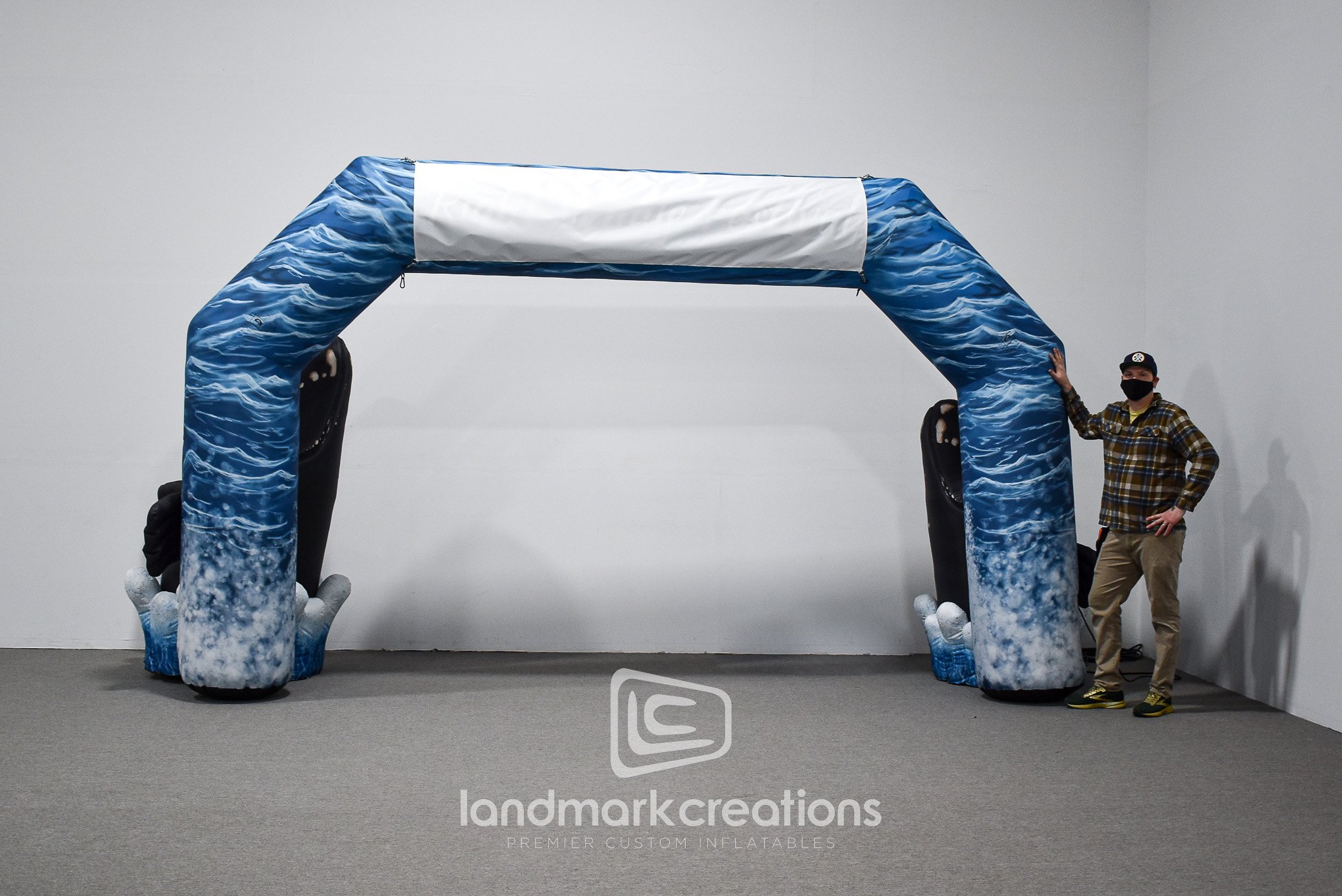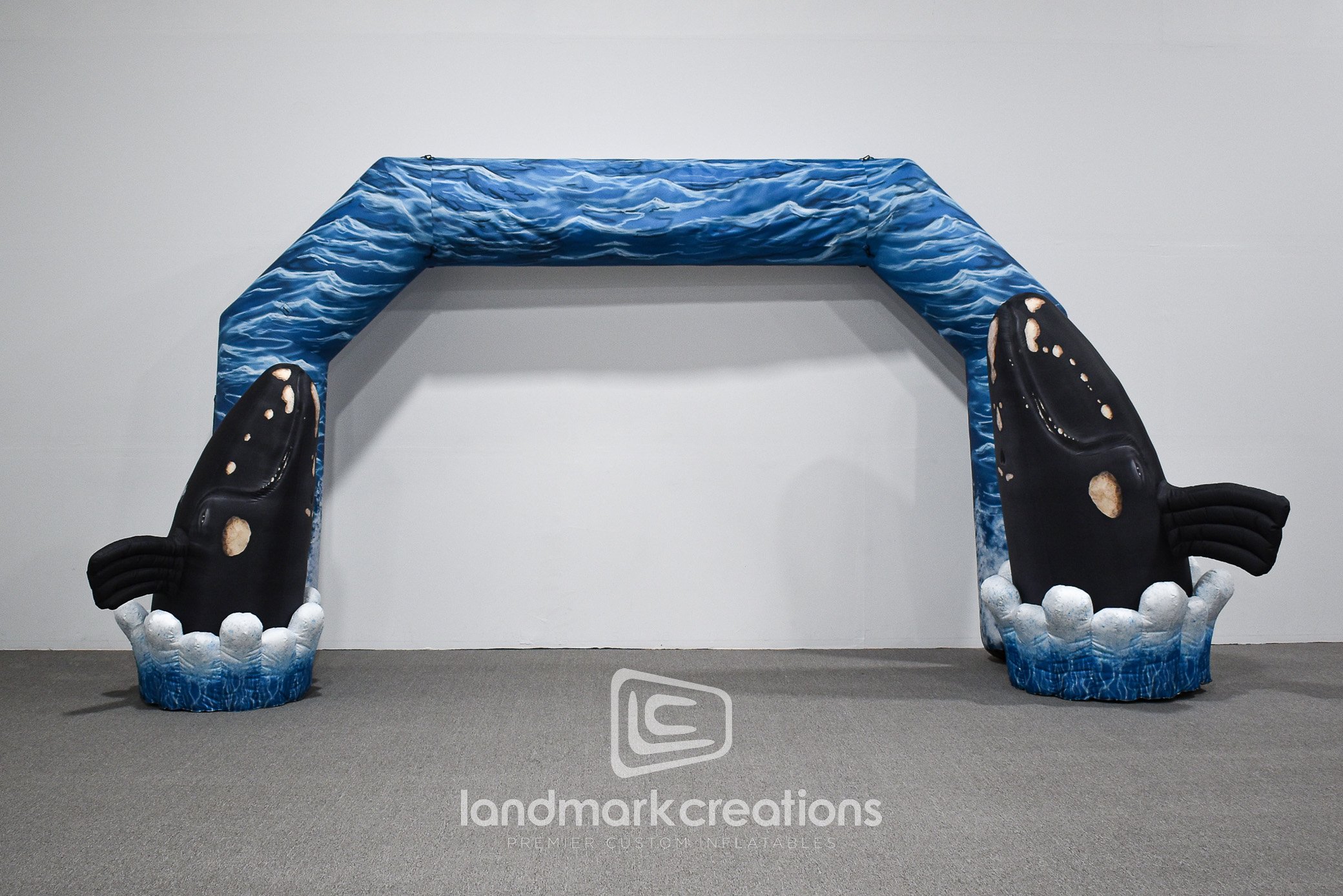 This custom inflatable arch featuring two right whale replicas was created by Clearwater Marine Aquarium for their Right Whale Festival. The festival celebrates the annual return of the North Atlantic right whales to the warm coastal waters. Because inflatables are easy to set up and transport, they can be used by zoos and aquariums for a wide variety of exhibits and events.