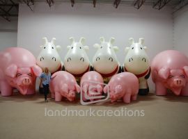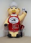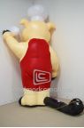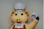 Inflatable mascots, like this BBQ pig chef, helps attract attention to local restaurants. Road Side BBQ inflates their pig mascot outside to serve as a location device and welcome guests.