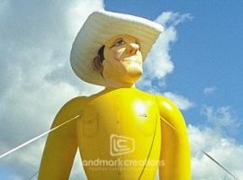 This inflatable cowboy is used to welcome riders and rodeo fans to the Toughest Cowboy tournaments.