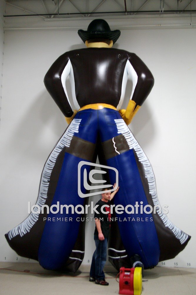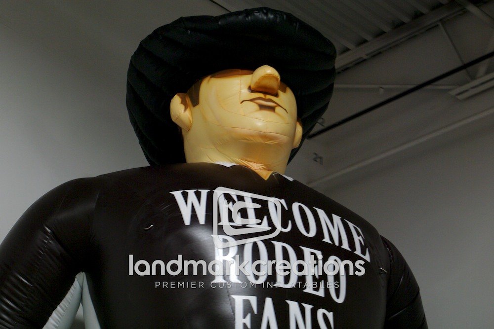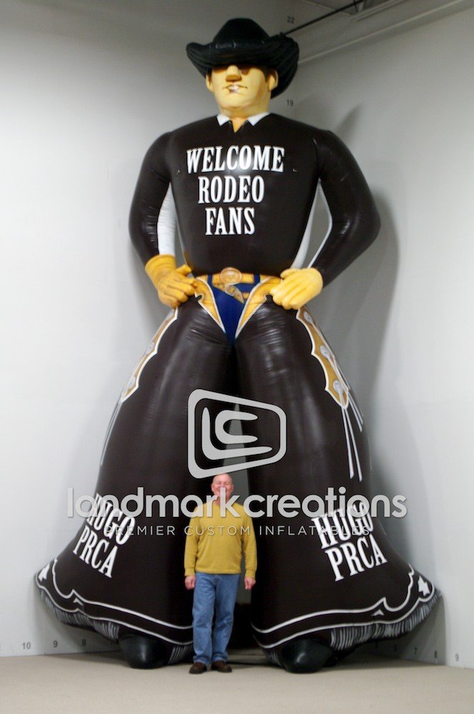 Welcome customers to your event with a giant, friendly mascot inflatable. This cowboy for the Hugo PRCA Rodeo heightens the spirit at events and makes a great photo opportunity that rodeo fans will want to share.