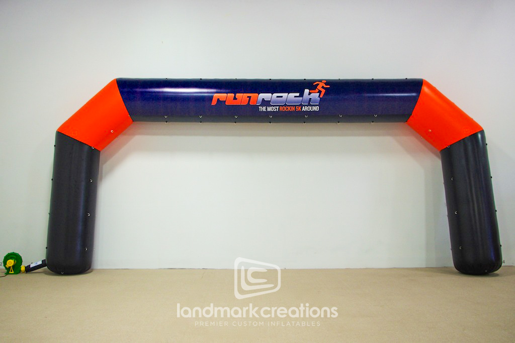 Designed for The Run Rock 5K & Music Festival, this custom inflatable arch features the 'Run Rock' logo prominently on both sides of the top bar. Serving as a dynamic entryway and finish line marker, it enhances event visibility and adds excitement to race festivities. This project exemplifies our expertise in creating bespoke inflatable archways tailored for racing events and music festivals.