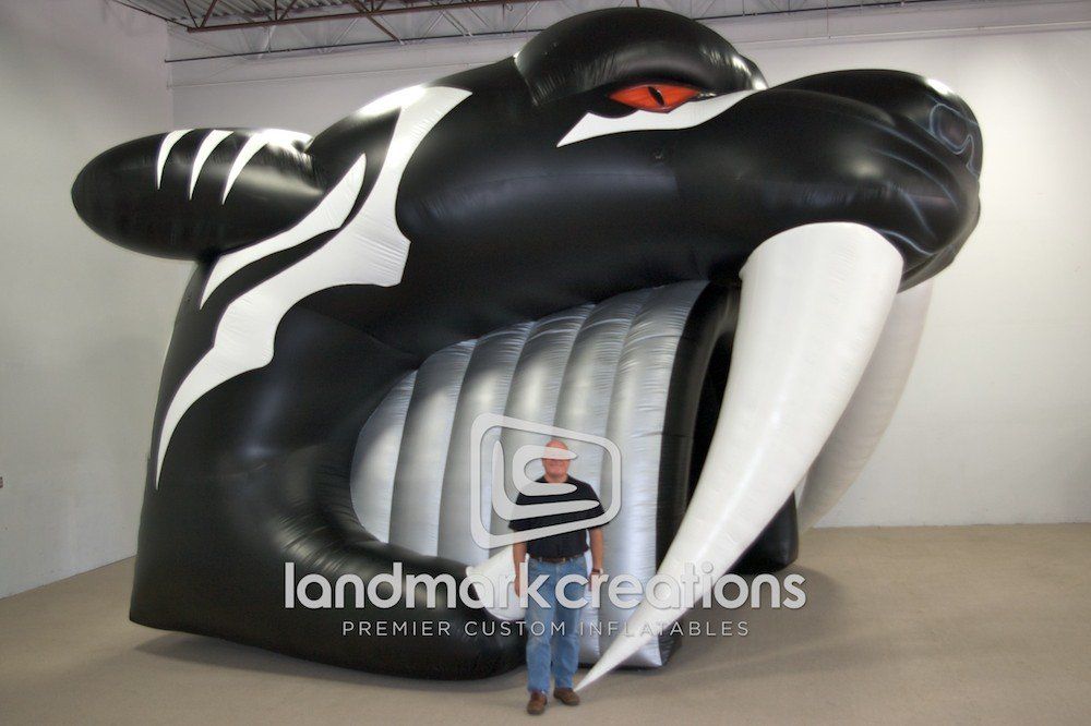Unique and slightly terrifying, this inflatable sabertooth football tunnel was purchased by Plymouth High School in Michigan and is used during athletic events.