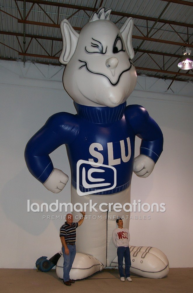 Saint Louis University fans can't help but cheer when this massive Billiken mascot, a well known good-luck figure, is inflated during events.