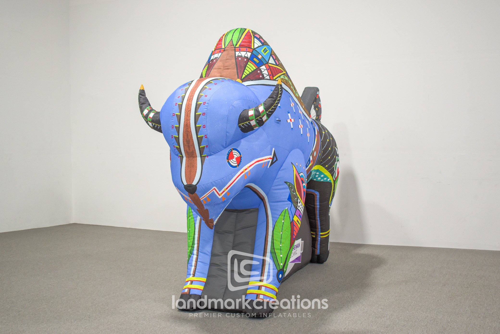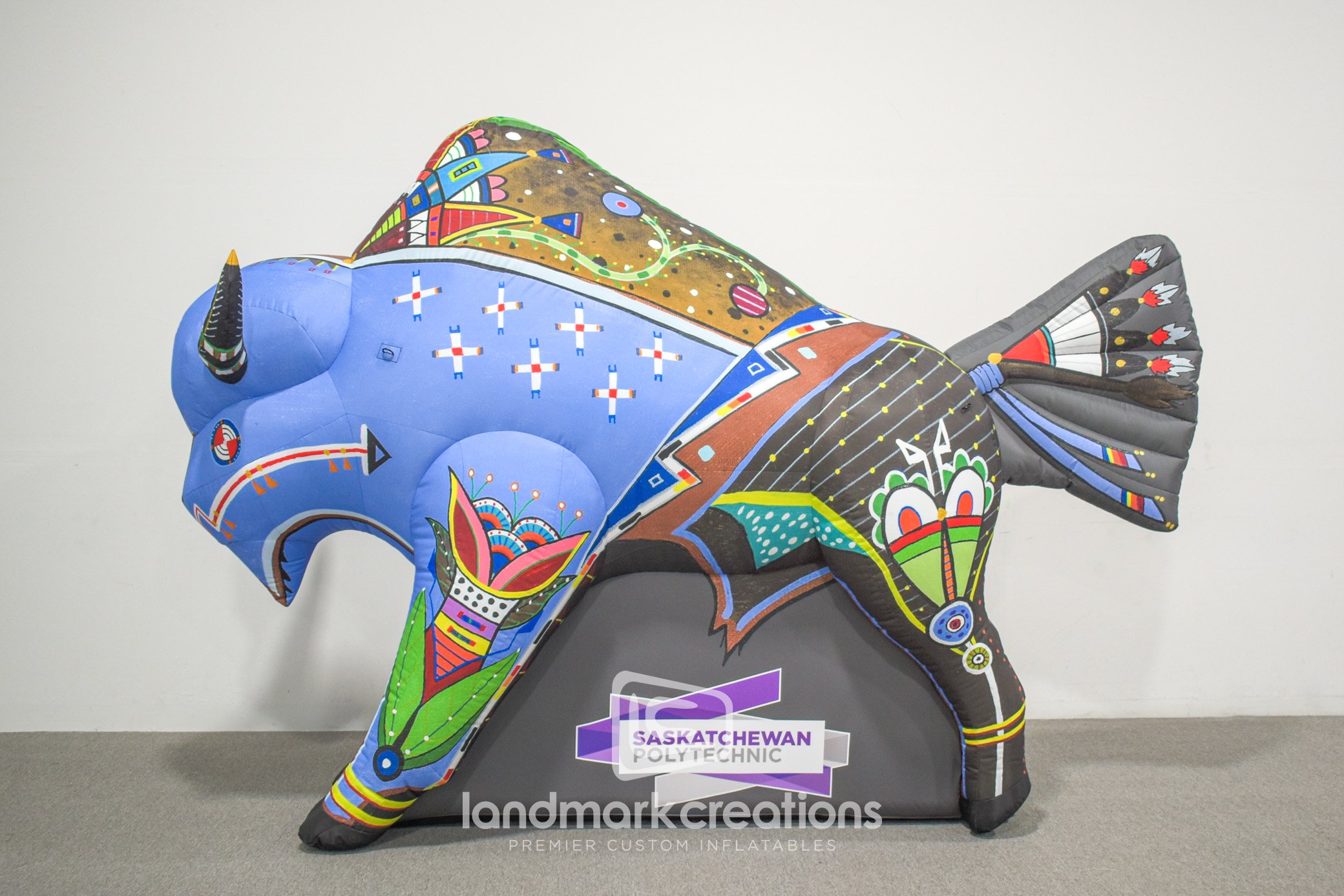 Landmark Creations partnered with Saskatchewan Polytechnic to craft a stunning 8 x 12 x 4-foot inflatable bison mascot, designed for educational tours across campuses and events. This custom inflatable, featuring a double-sided mirrored billboard design, serves as a bold, portable branding solution that celebrates the spirit of Saskatchewan Polytechnic. Perfect for engaging students and visitors, this mascot captures attention and promotes pride, seamlessly aligning with the institution's mission to inspire learning and innovation.