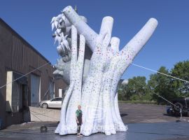 Discover the 35-foot Seated Little Cloud Boy Mascot, an inflatable art installation crafted by Landmark Creations for the art collaboration FriendsWithYou. Displayed in a public park, this custom inflatable art creates a joyful and peaceful atmosphere, perfect for outdoor community events. Our expertise in producing bespoke inflatables for art exhibitions brings your vision to life with large-scale, eye-catching designs that engage and inspire. Learn more about our inflatable art in our gallery.