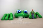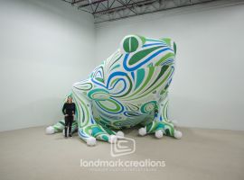 Make a statement with a giant inflatable rooftop mascot. This inflatable frog, designed for Señor Frog's Restaurants, adds a dramatic visual to their rooftop!
