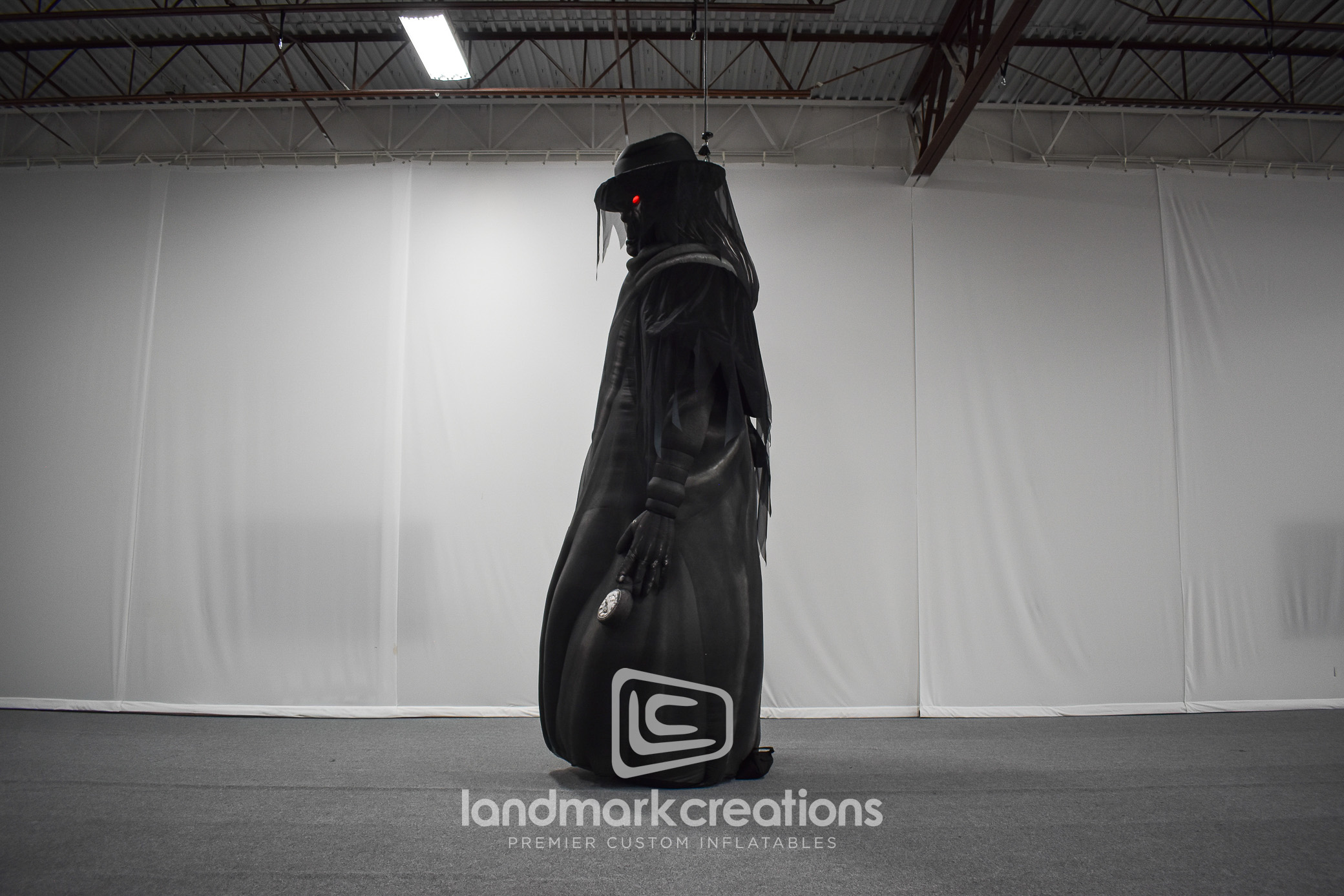 For their international concert tour, progressive metal icons Dream Theater turned to Landmark Creations for a custom inflatable character with dramatic visual impact. The result? A 16-foot-tall Shadow Man—complete with red DMX-controlled lighting in the eyes—that brings a larger-than-life presence to stage sets across indoor and outdoor venues. Designed for ground-supported installation with pick point capabilities, this standing inflatable is a striking example of how custom inflatables can bring storytelling and mood to life on tour.