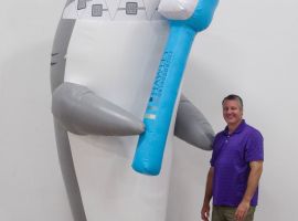 "Just wanted to say how much we LOVE our inflatables. We tested them in our lobby where they were, of course, an instant hit for school group photos. Our leadership was quite pleased with the durability and the realism."