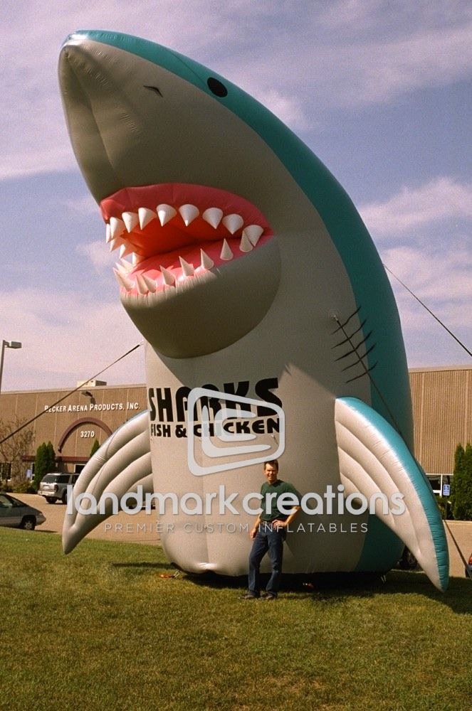 Need a way to make a splash at your next restaurant event? Custom inflatables, like this inflatable shark head made for Shark's Fish and Chicken Restaurant, draw crowds to restaurant locations and thrill customers onsite.