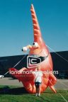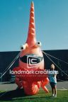 Giant inflatable mascots, like this happy shrimp, attract attention to shrimp festivals and seafood restaurants.