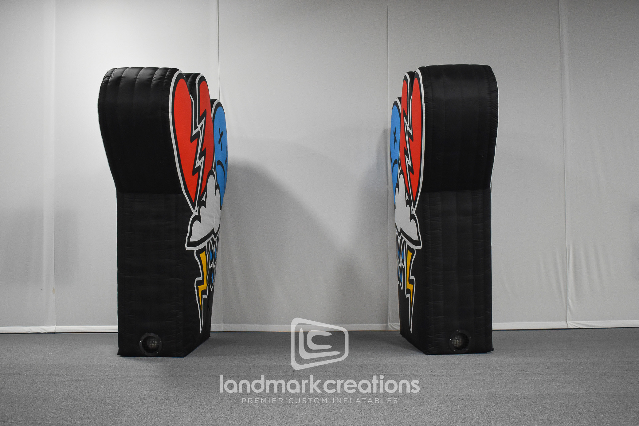 Simple Plan’s North American tour called for a bold, high-contrast centerpiece—so they turned to Landmark Creations for a custom inflatable billboard featuring a mix of whimsical icons: a cloud, a face, and a heart. Standing 13 feet tall, this eye-catching display helped define the visual identity of the tour and added dimension to the band’s stage production. Built to travel and install efficiently, the freestanding inflatable shape delivered strong branding and emotional impact across venues of all sizes.