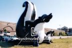 These inflatable skunks were used during mass demonstrations at H&M stores. The inflatable skunk attracted attention for the "H&M Stinks" demonstration while speakers accused H&M of running sweatshops.