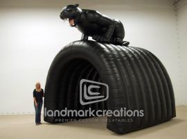 The Southwest High football team storms the field through their custom inflatable cougar football tunnel. The fierce cougar mascot replica inspires team spirit in both team players and the fans in the stadium.