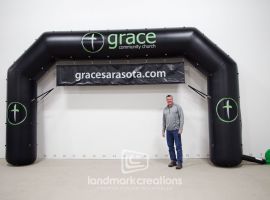 Landmark Creations crafted a custom inflatable archway featuring a dynamic shark design for MasterKi Systems, a tech industry firm based in Bismarck, ND. This eye-catching arch served as a standout centerpiece at trade show displays, effectively enhancing brand visibility and engaging attendees. Our custom inflatable archways are designed to captivate audiences and elevate event presence.