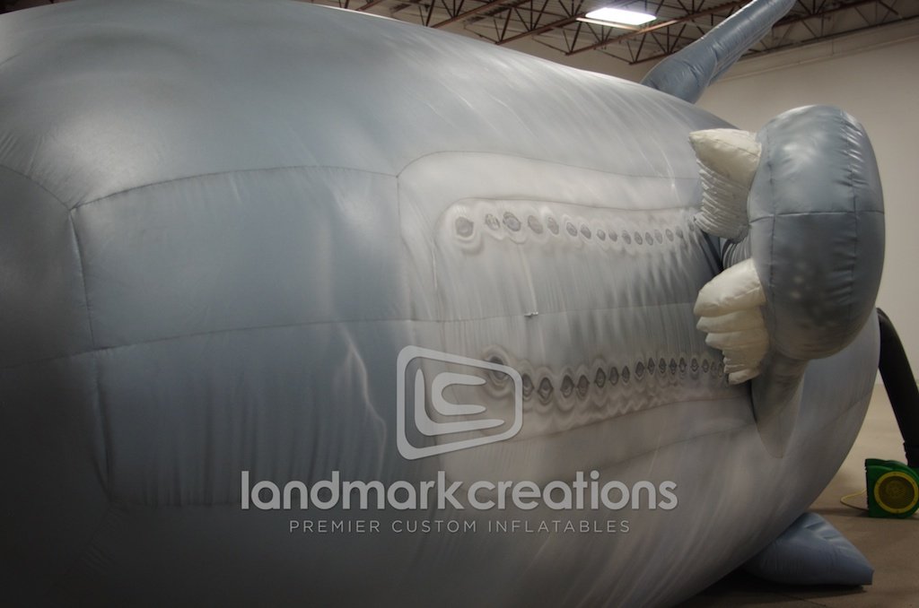This massive and extremely realistic inflatable whale display for Mystic Seaport is mounted onto a custom trailer and used as a rolling educational exhibit. The Museum of America and the Sea teaches visitors about the history of whaling.