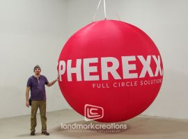 With a name like Spherexx, creating an inflatable sphere to suspend above the software development company's exhibit space at the National Apartment Association convention was a no-brainer. The inflatable sphere created a large visual, so it was a location device to help attendees find them at the NAA show. Inflatables pack small, so they're also easy to transport & store between events!