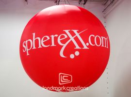 Software solution provider, Spherexx, shows off their updated logo with an inflatable sphere in their exhibit space at the National Apartment Association convention. The inflatable sphere was suspended making it very easy for attendees to find them at the show. Inflatables create large visuals that make perfect location devices at conventions and trade shows, and they pack small for easy transportation & storage between events!