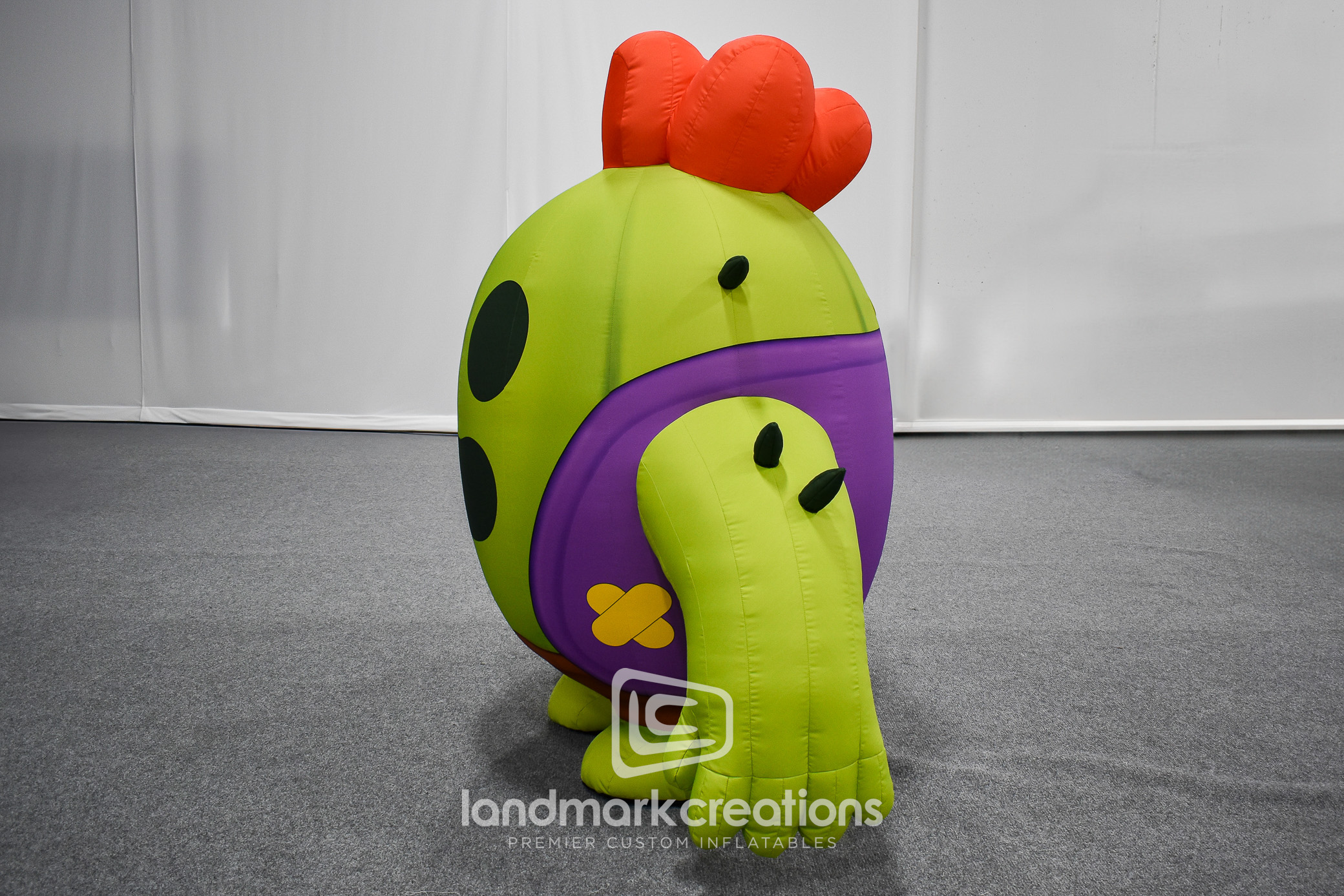 To generate buzz for Brawl Stars, creative agency Unobtainium partnered with Landmark Creations to bring one of the game’s most recognizable characters to life—Spike. This walkabout inflatable costume was engineered for live activations, influencer campaigns, and fan events. Designed to accommodate a range of performer heights, the soft-sculpted character suit adds a playful, high-visibility presence that supports brand engagement and photo opportunities. Whether onsite at events or starring in short-form video, Spike is built to stand out.