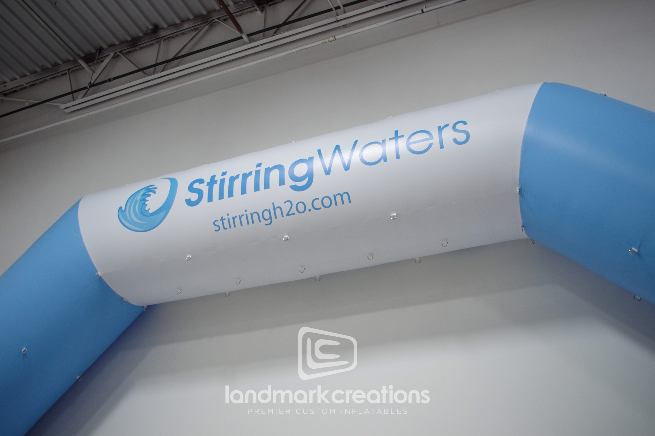 The Stirring Waters Arch is a bespoke inflatable entryway crafted for Stirring Waters Ministry. This arch serves as a welcoming gateway for their events, enhancing visibility and engagement with attendees.