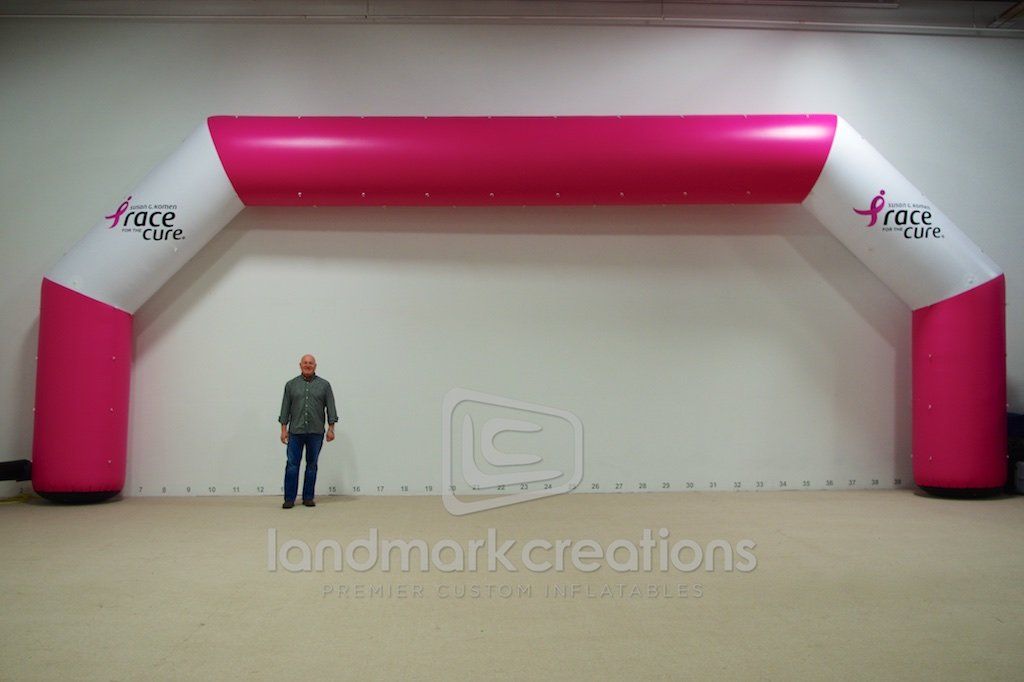 A South Dakota chapter of Susan G. Komen enlisted the expertise of Landmark Creations to custom build a giant, inflatable arch in the organization’s trademark pink color.