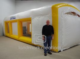 “We wanted to convey our 'money-saving' message; what better way than a 14-foot-tall inflatable booth with money flying around in it?”