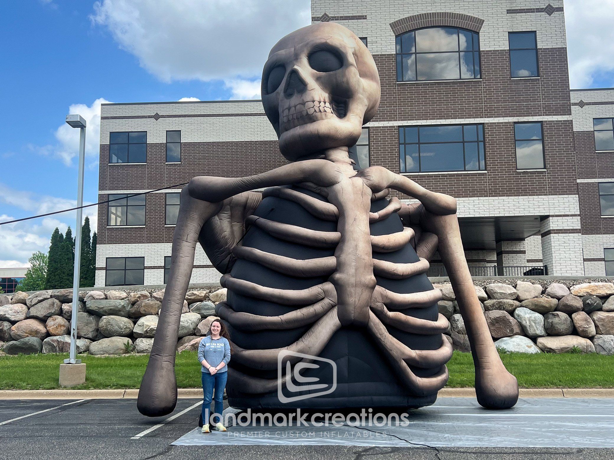 Landmark Creations designed this realistic, 25-foot-tall skeleton inflatable for The Offspring's 30th anniversary concert at the Honda Arena. This striking stage display, inflated in under a minute, provides an unforgettable visual impact for both indoor and outdoor concert venues. Explore our gallery to see more innovative stage designs and inflatables for entertainment events.