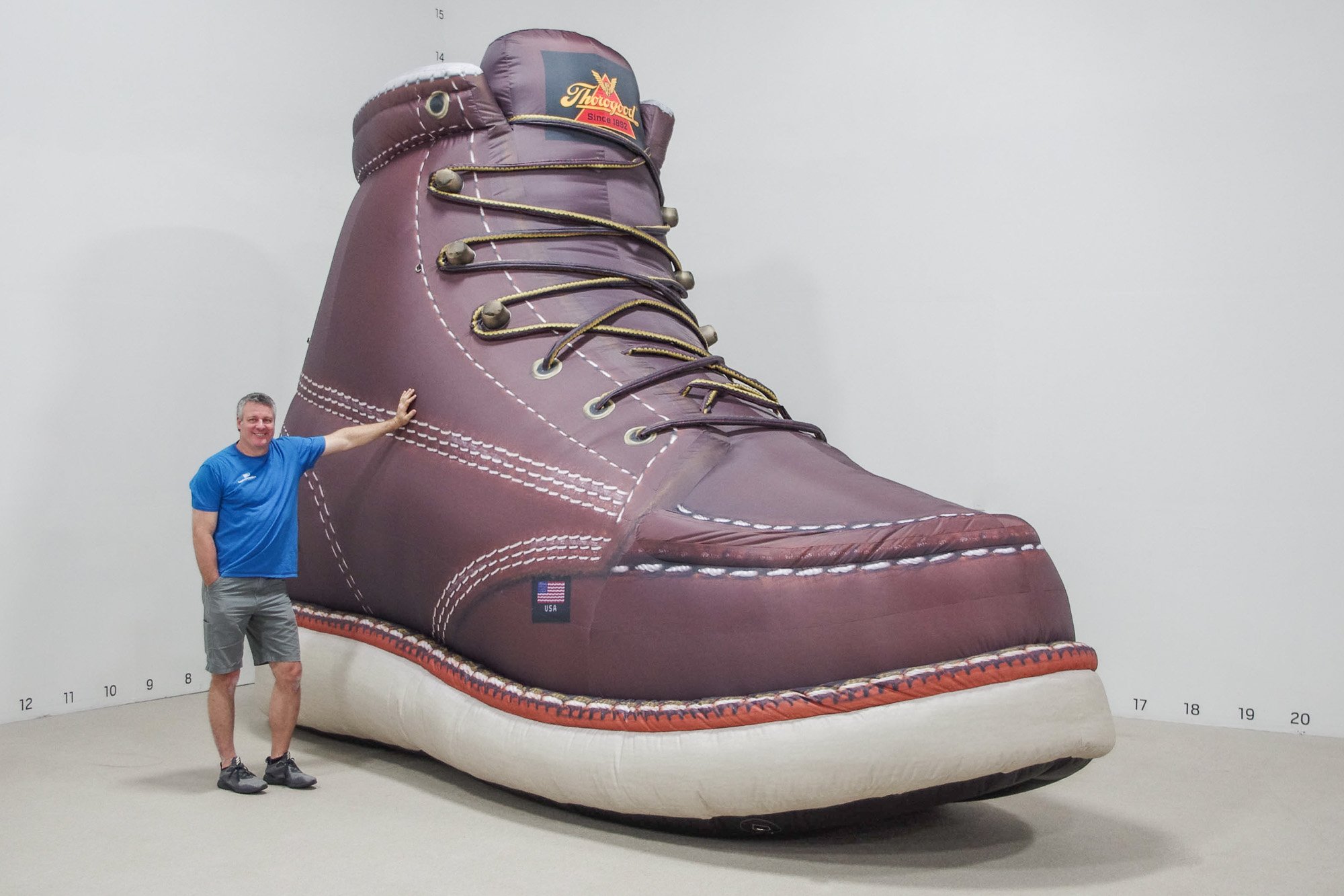 What size shoe is this?! Thorogood, the maker of “footwear for people who work for a living,” sent us one of their iconic work boots and asked us to recreate it in inflatable form. Inflated for company events, store openings, even parades- this big boot has certainly made an impression on the public!