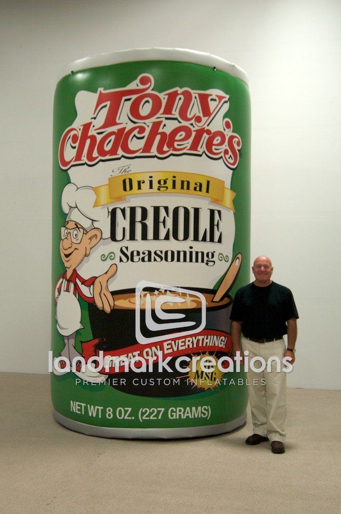 Inflatable product replicas, like this inflatable Creole Seasoning can for Tony Chachere's, attract crowds at events and increase brand recognition.