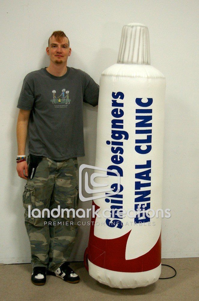 Add an inflatable to your dental office like Smile Designers did with this custom-designed point of purchase toothpaste display.