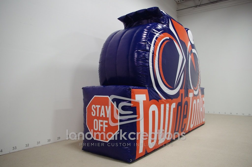 This custom built inflatable promotes sporting event Tour de Tonka, and can be used in a variety of ways such as a starting line, a backdrop for photos, or as a billboard.