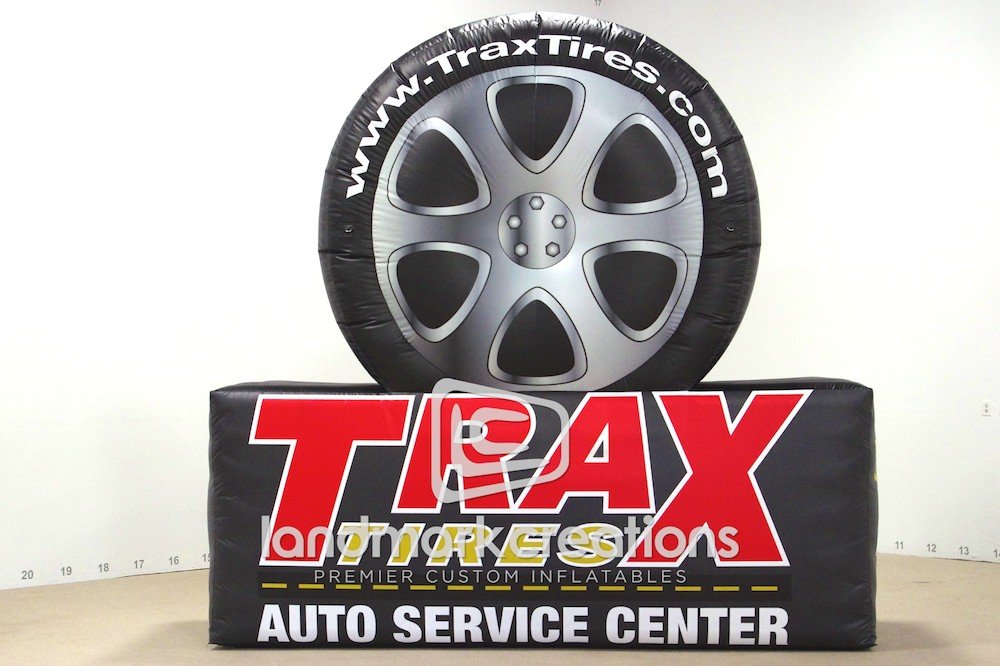 To stand out and announce special retail promotions, Trax Tires Auto Service Center inflates a giant, inflatable tire billboard. Inflatable billboards are a fun and easy way for automotive dealerships, mechanics and body shops to advertise their location and services.