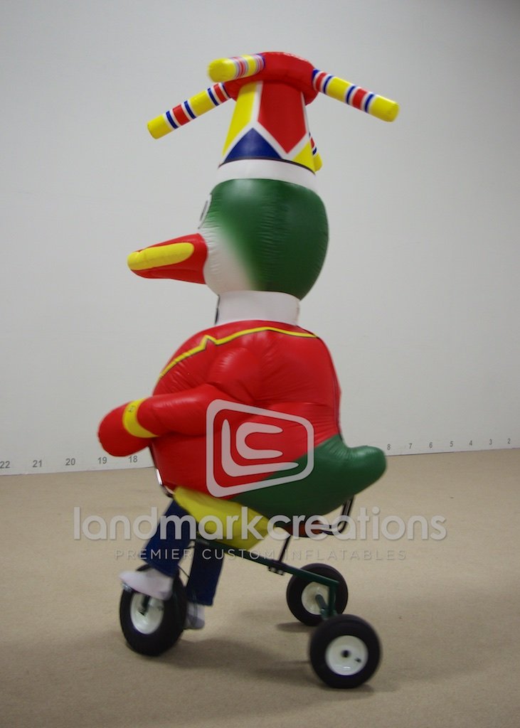 Remember the vintage wind-up tin duck toys? Placed atop a tricycle, this inflatable toy duck character was one of three vintage mascots on trikes in the Charlotte Center City's holiday parade! Children are in awe when they see giant characters or toy replicas being pulled by.